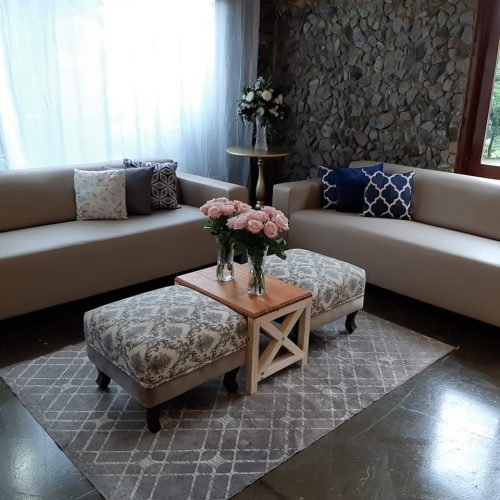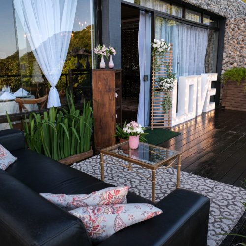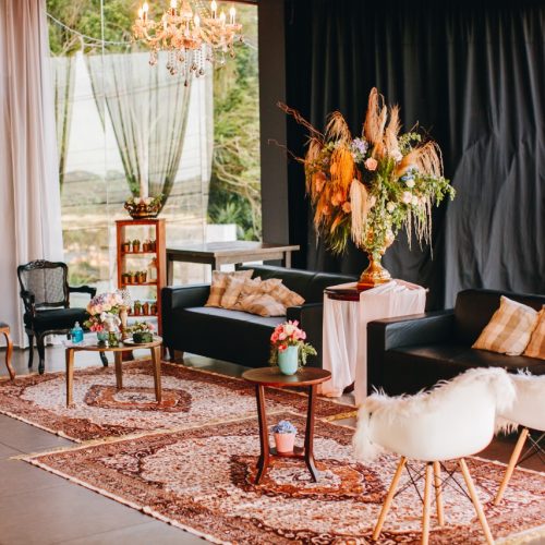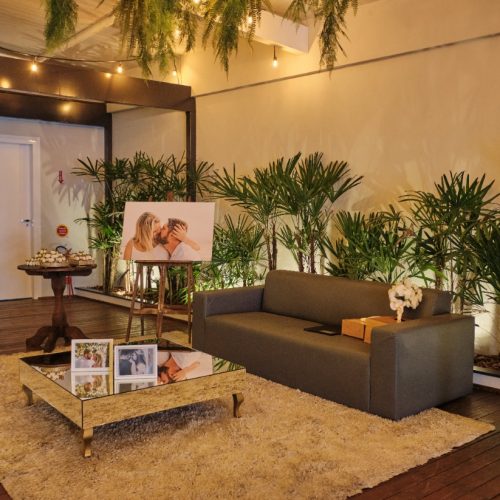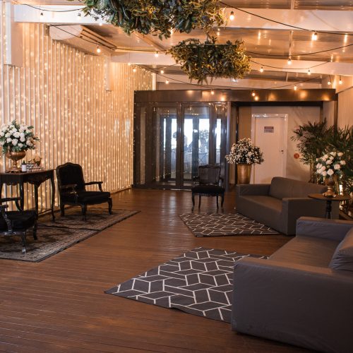 Em cores bege e preto, os sofás criam e otimizam espaços em seu ambiente, tornando o ambiente mais aconchegante, tanto para uma recepção agradável, quanto para um momento de descanso dos seus convidados. Mas, além disso, o lounge no casamento é um ótimo lugar para fazer algumas fotografias profissionais e protocolares ou até mesmo aquelas mais descontraídas, que sempre são mais divertidas e ficam por muito tempo na memória de todos!